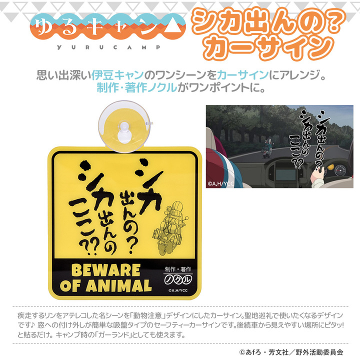 The “Beware of Animals” car sign is based on the famous scene where Rin-chan was telegraphed as she drove through the Izu Peninsula. The “Produced by and copyright Nokuru” logo is a key point.